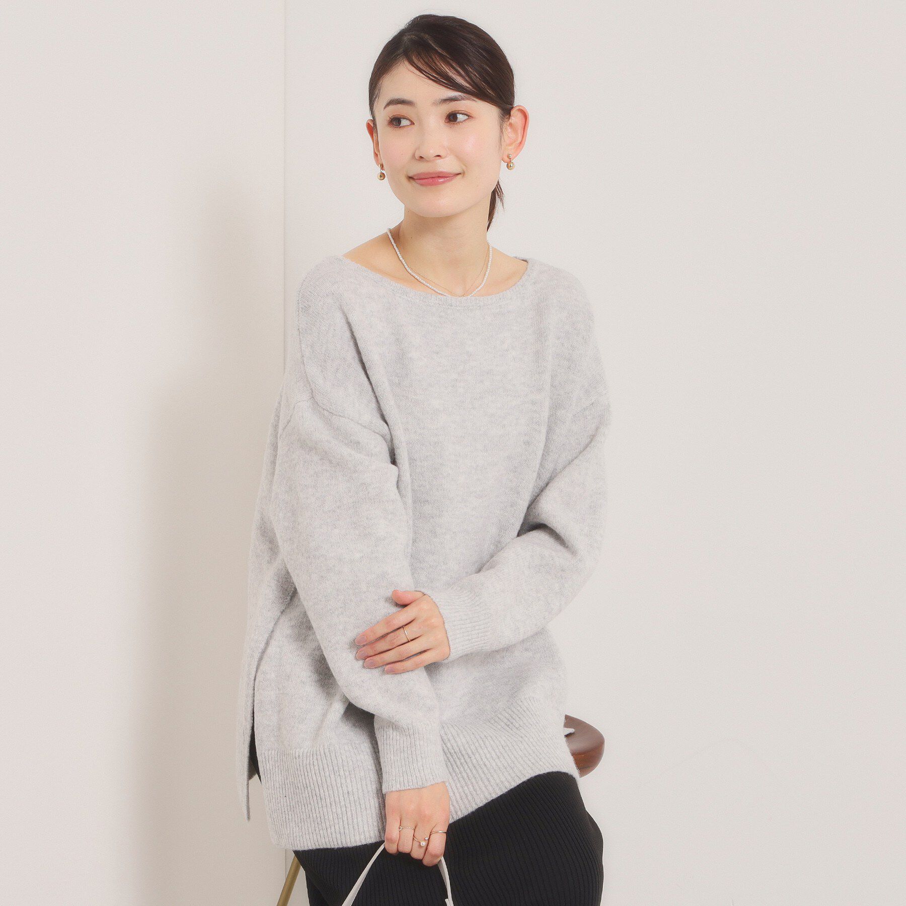 【デザイン】抜け感ある大人スタイルがつくれるビッグシルエットニット。ふっくら温かみのある柔らかな着心地。大胆なサイドスリットがおしゃれなビックシルエ.. |