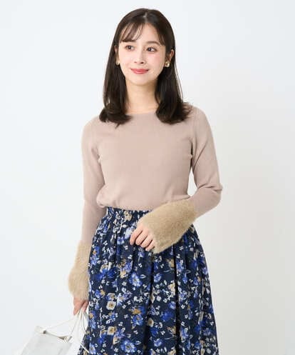 [MK ミッシェルクラン 小さいサイズ]一枚で着映える袖のフェザーが大人可愛いポイントに■デザイン袖口をフェザー素材で切り替えたニットプルオーバー。デザイ.. |