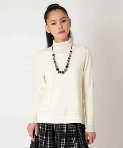 Maison de CINQ(メゾン ドゥ サンク) 【小さいサイズ】ボーダー柄モックネック六分袖ニット/洗える ラベンダー/紫 36