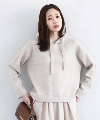 [MK ミッシェルクラン 小さいサイズ]ニュアンス感たっぷりなあったかニットフーディー■デザイン身幅に適度なゆとりを持たせつつ、丈感はコンパクトでバランス.. |