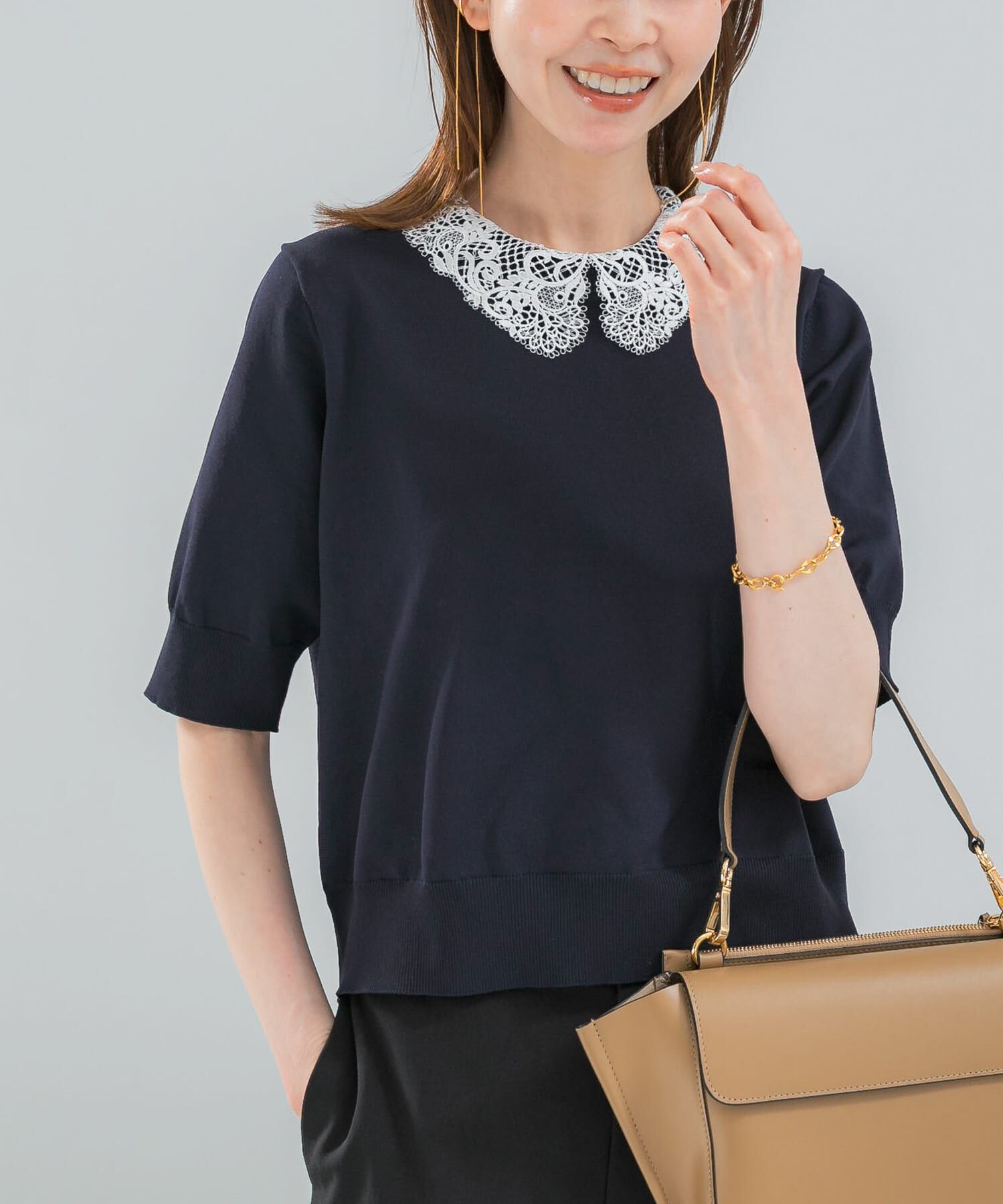 このアイテムはWEB限定商品です。【取り外し可能なレース衿が顔周りを彩る、フェミニンニット】身体のラインを拾いにくい程よい立体感のあるドライな編地を使.. |
