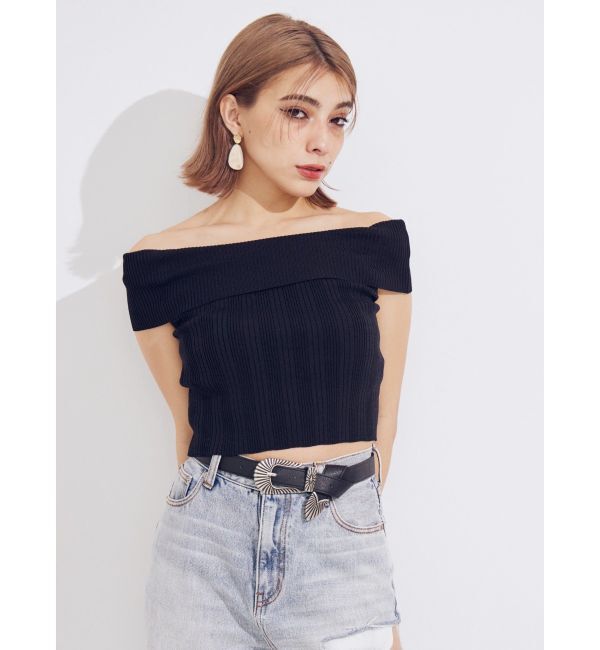 【エヴリス/EVRIS】 オフショルリブニットトップス