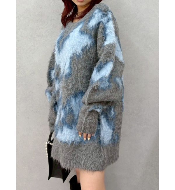 ■デザインアニマル風のニュアンス柄がEVRISらしいオーバーサイズのニットプルオーバー。アウターの中でも映えるニュアンス柄。起毛をかけた編地で季節感のある.. |