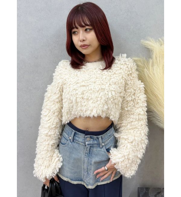 【エヴリス/EVRIS】 シャギークロップドニットトップス