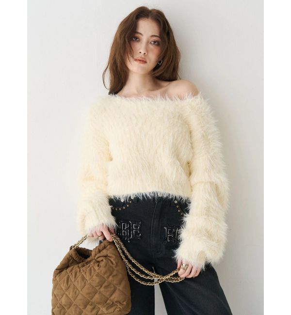 長めの毛足が特徴的なシャギーニットトップスです。ざっくりとした編地で存在感のある1枚です。デコルテは広めに開けているので、着ぶくれせずに着用できます.. |