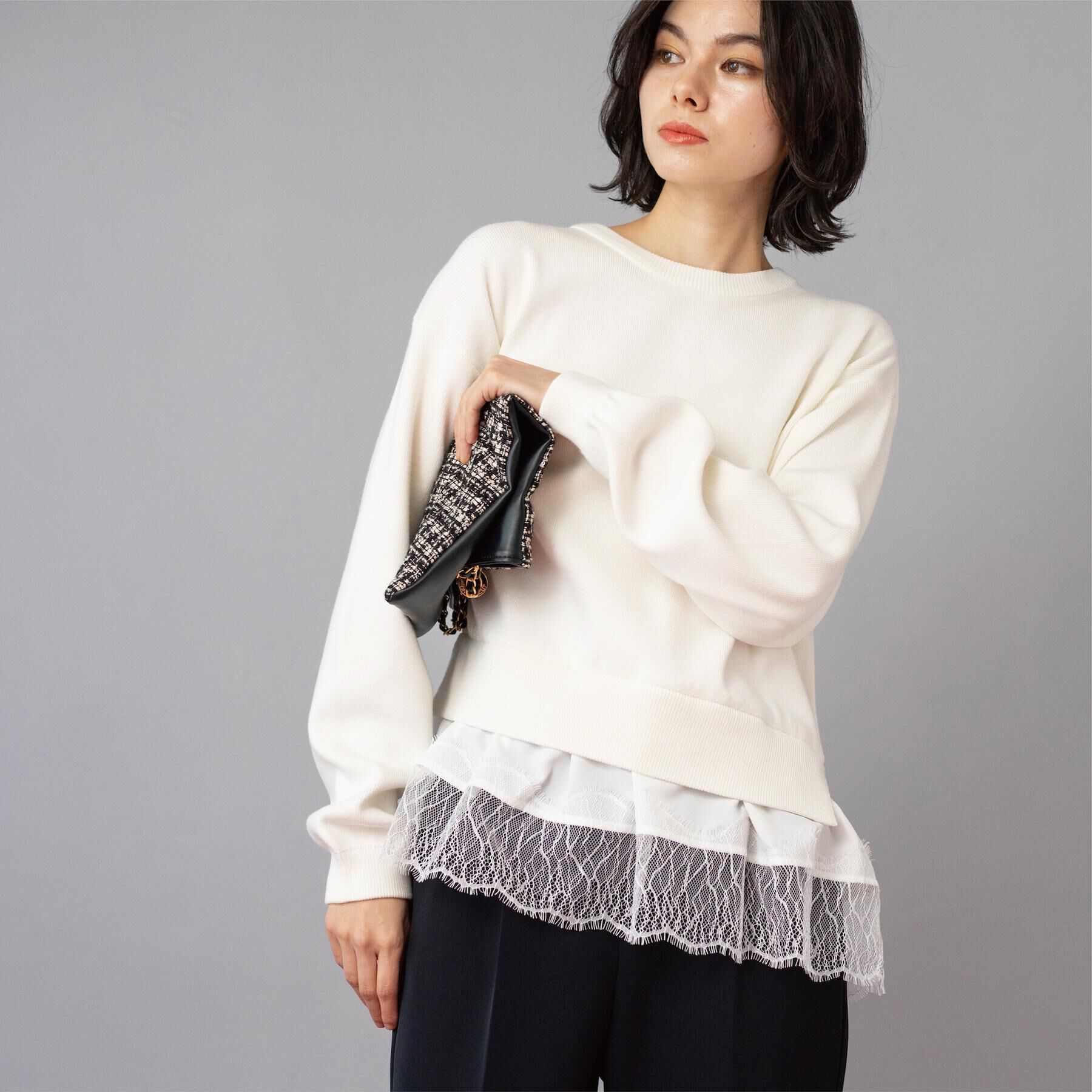 【オペークドットクリップ/OPAQUE.CLIP】 裾レースドッキングニット