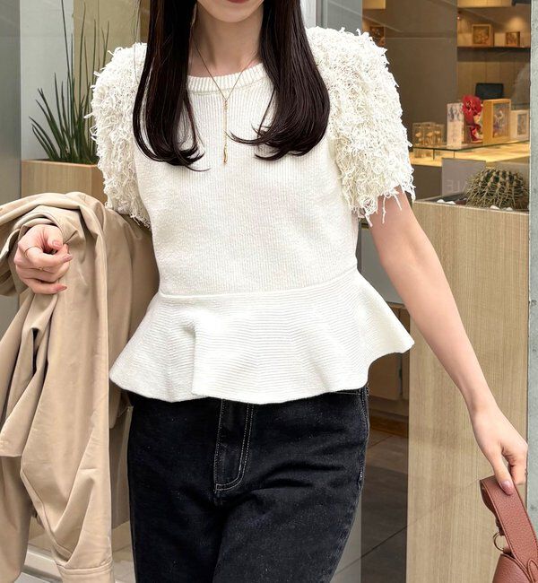【カプリシュ レマージュ/CAPRICIEUX LE'MAGE】 フリンジペプラムニット