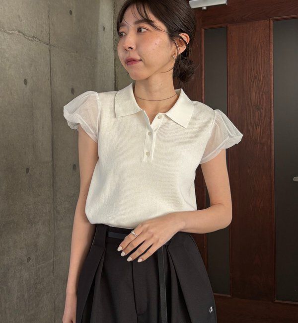 【カプリシュ レマージュ/CAPRICIEUX LE'MAGE】 ミニバルーンスリーブポロニット