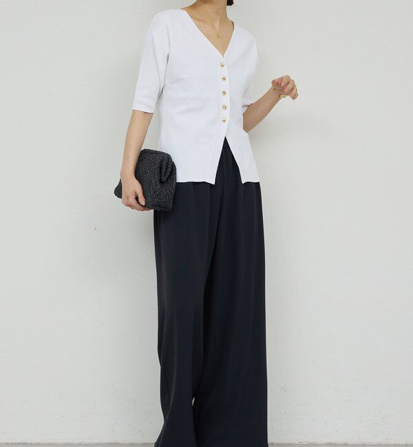 シルエットが美しい万能リブニット ●リブ素材の縦ラインがボディを美しく見せるニット。 ●伸縮性のある生地は着心地◎ ●開きすぎないVネックが顔周りをすっき.. |