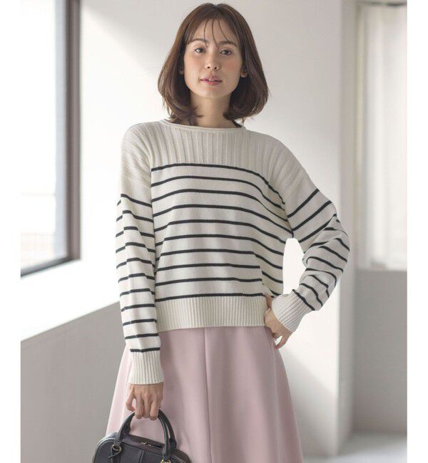 【クミキョク/組曲】 華奢見え パネルボーダーニット
