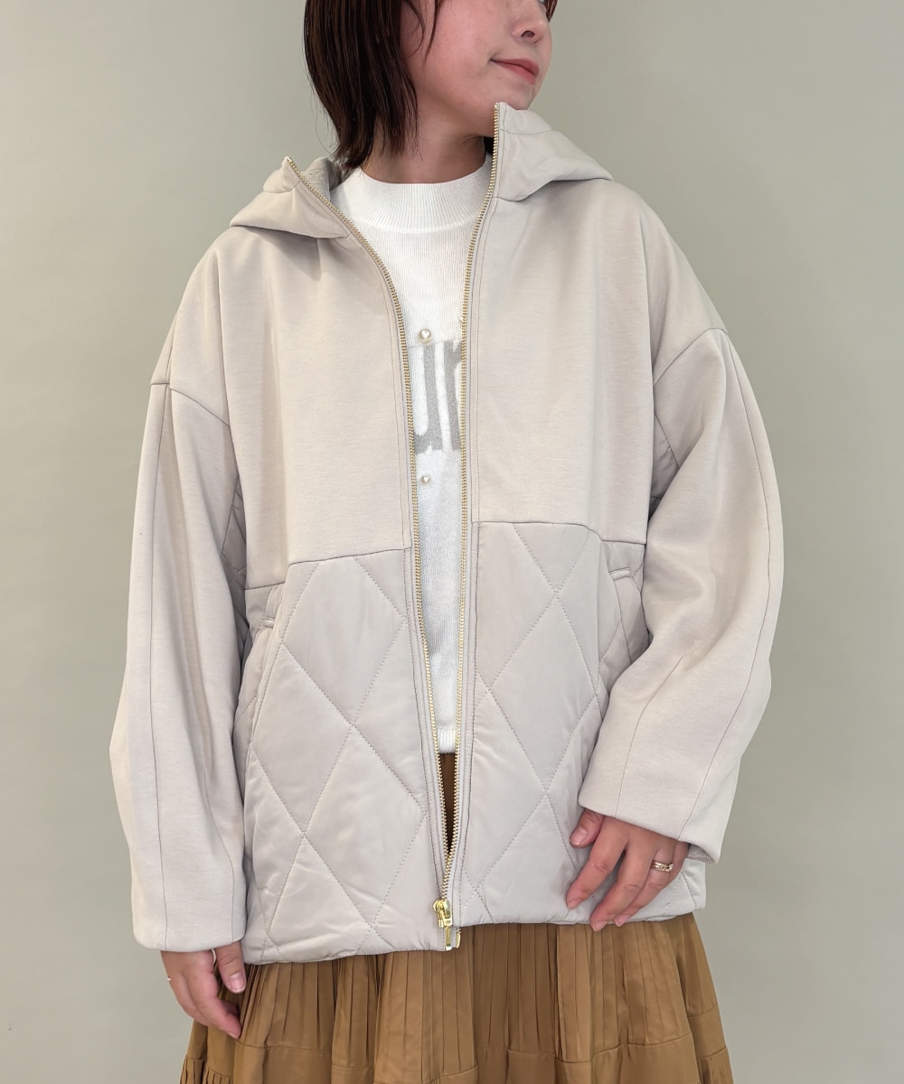 al’aise modulation(アレーズモジュレーション) 異素材ジョイントフーディーブルゾン アイボリー/白 38