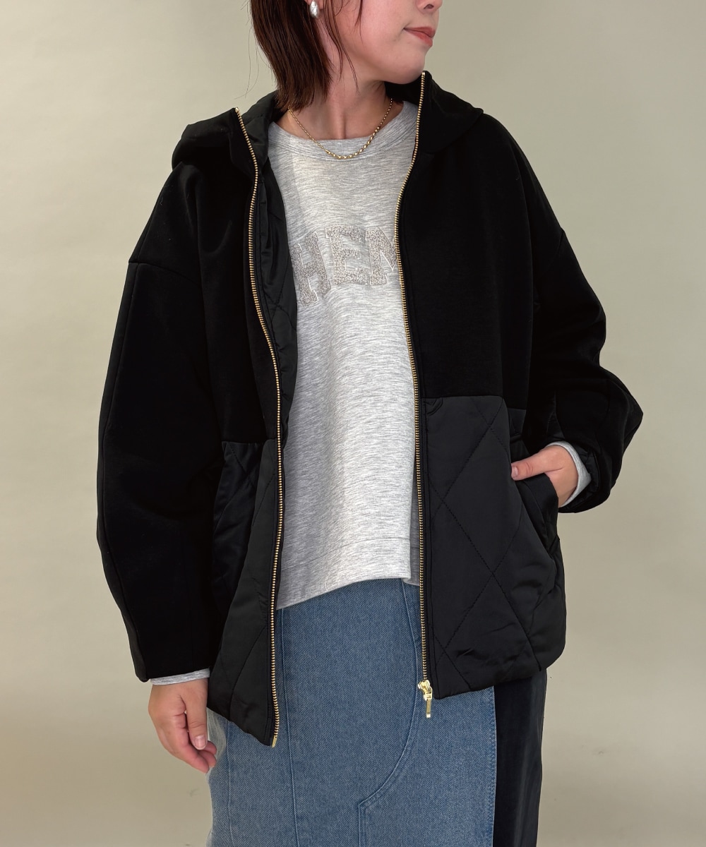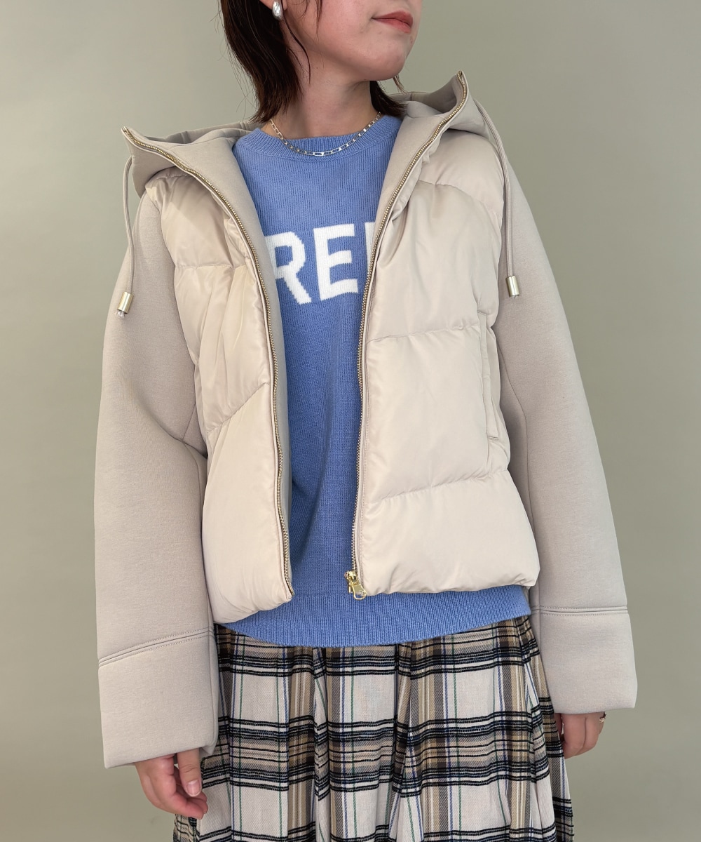 ・al'aise modulation・ 【デザイン】異素材の組み合わせがスタイリッシュなブルゾン。ふわっと暖かいダウン素材にボンディング加工を施したハリのある素材を.. |