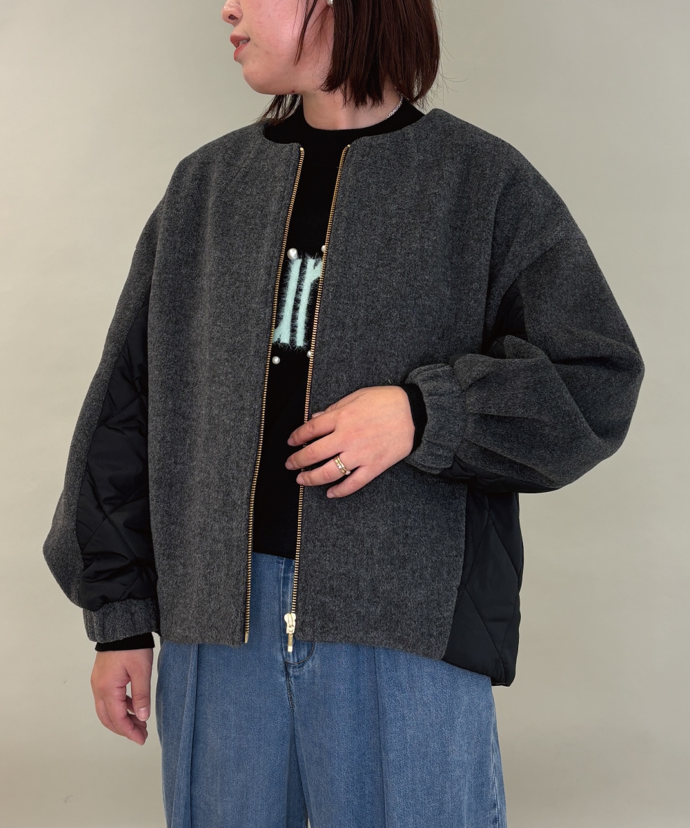 al’aise modulation(アレーズモジュレーション) 異素材切り替えノーカラージップブルゾン ダークグレー/灰 38