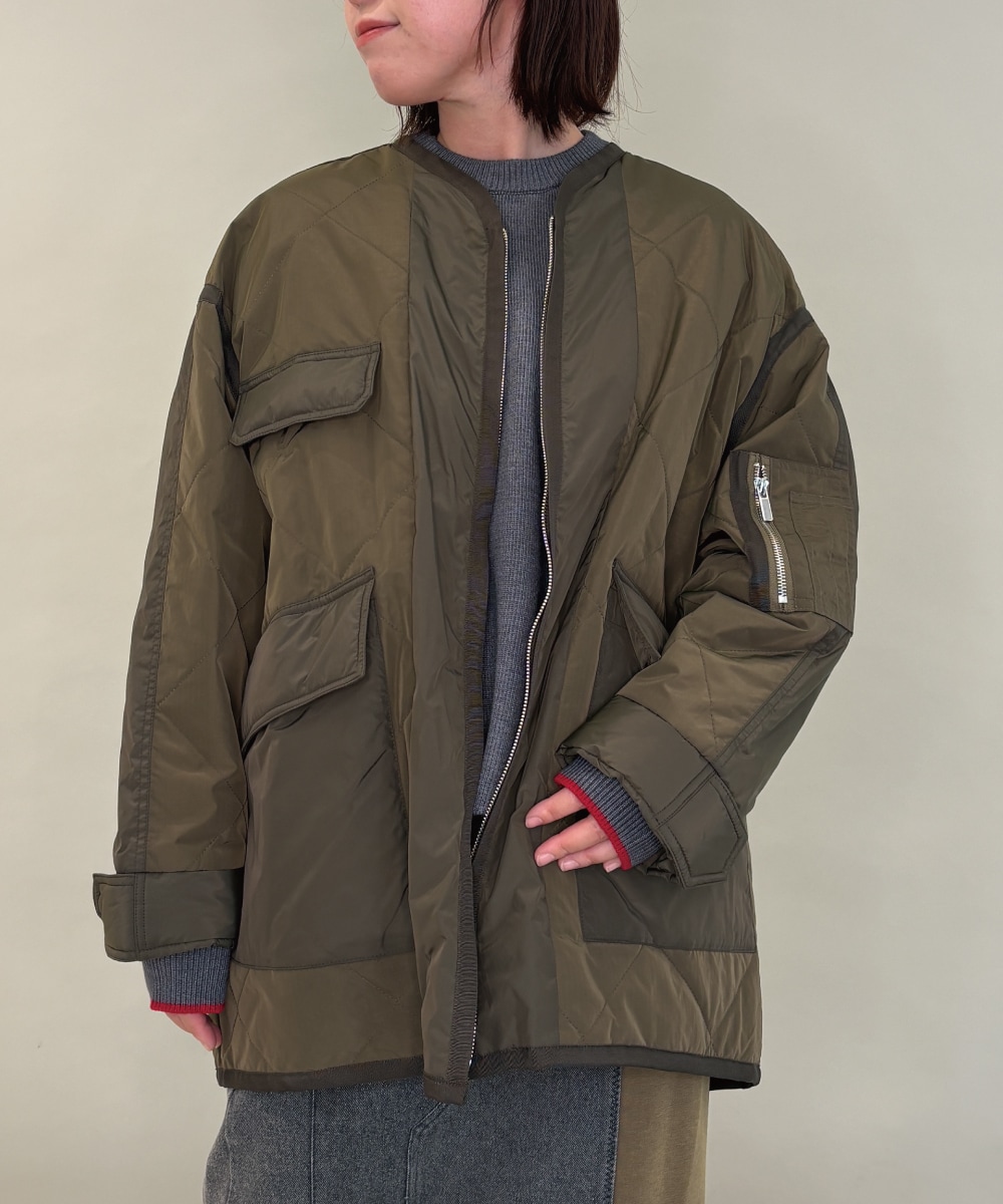 ・al'aise modulation・ 【デザイン】 薄中わたのキルティング生地や袖のシガレットポケットなど、ミリタリーライクなディテールが新鮮なノーカラーコート。フ.. |