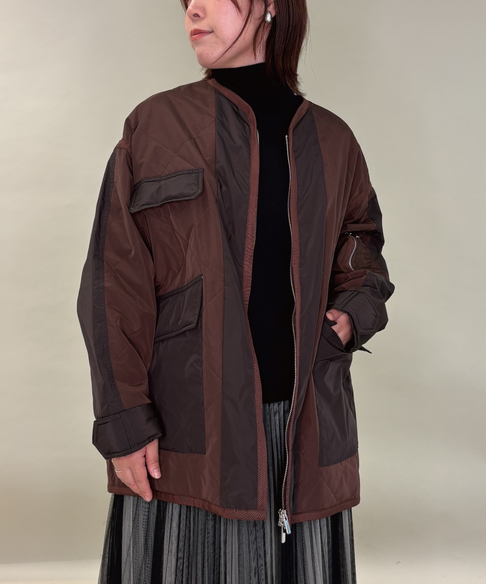 al’aise modulation(アレーズモジュレーション) 異素材切り替えミリタリーライクブルゾン ダークブラウン 38