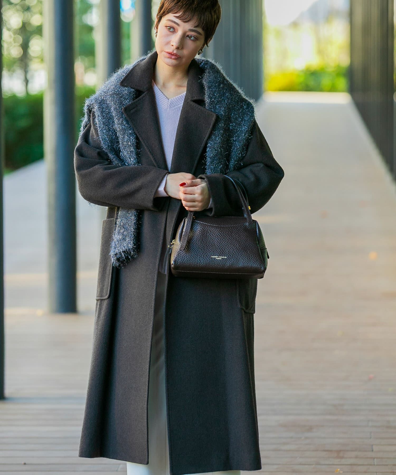【リッチな雰囲気のウールカシミヤコート】尾州で織られた上質な国産生地を使用。ウールとカシミヤをブレンドした軽くて膨らみのある糸で仕上げており、優しい.. |