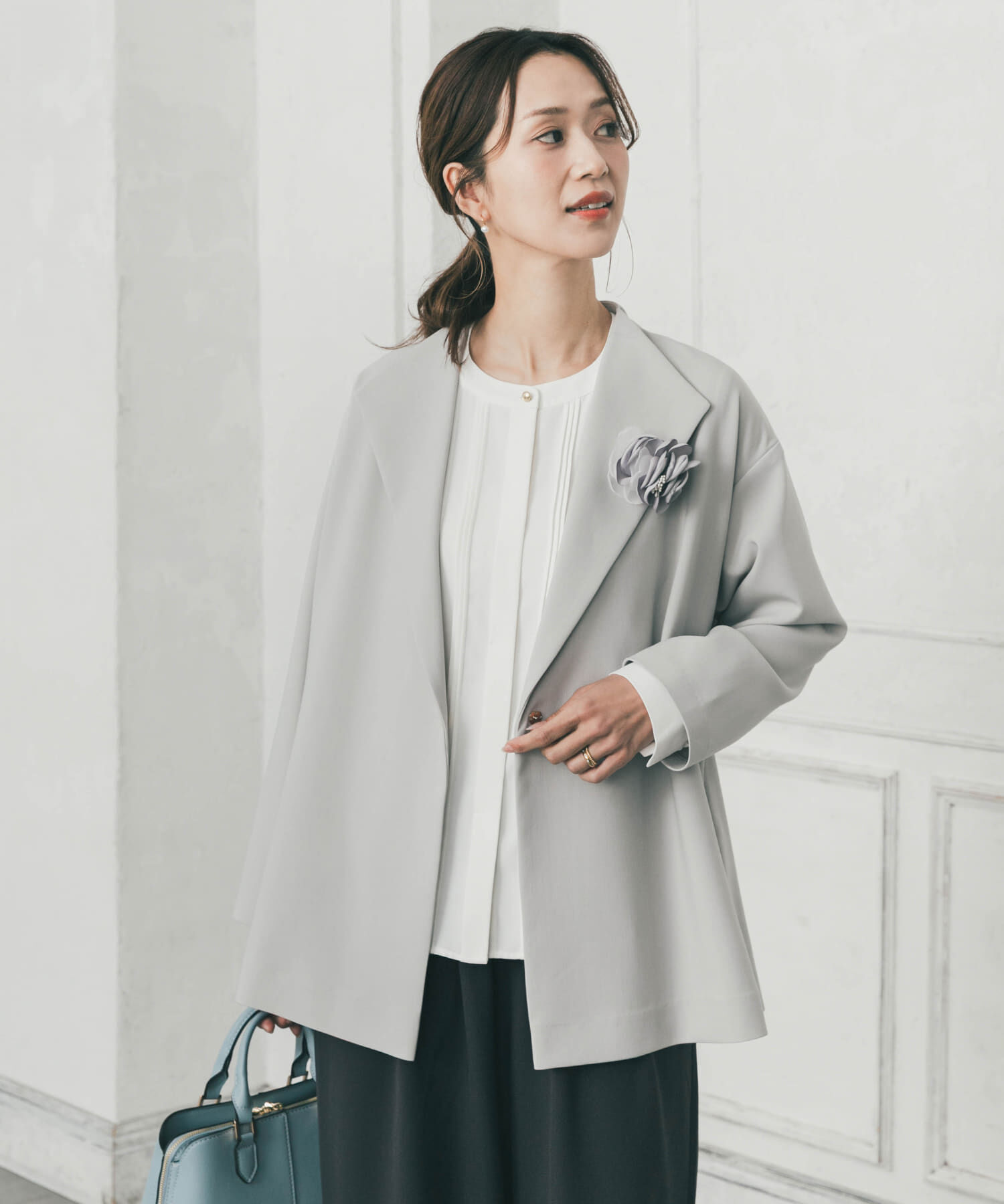 【シーンレスに活躍するリバーコート】羽織のような感覚で軽やかに着られるリバーコートは、綾目が立った素材感が特徴的な一枚。首元はすっきりとしたノーカラ.. |