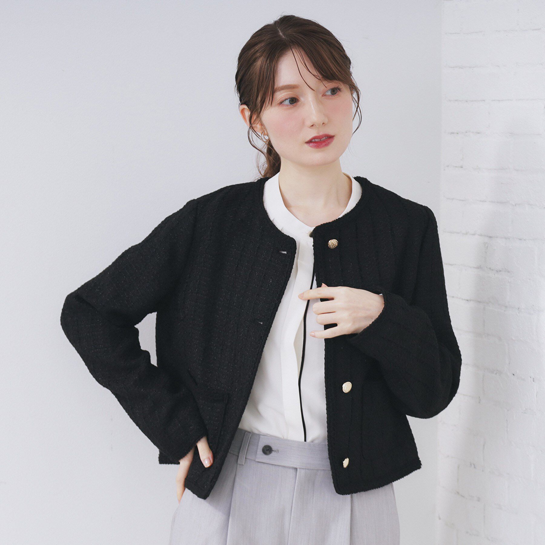 【インデックス/index】 ≪通勤・セレモニー/セットアップ対応≫ノーカラーツイードジャケット【洗濯機OK】