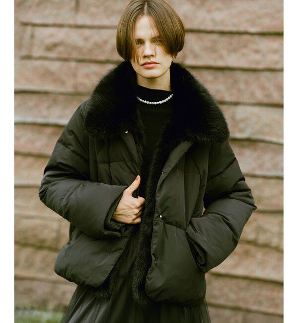 【allureville 2025 autumn&winter】ボリュームのある華やかなファー衿がポイントのダウンコート。ほんのり前後差をつけたヘムラインは後ろはヒップが.. |