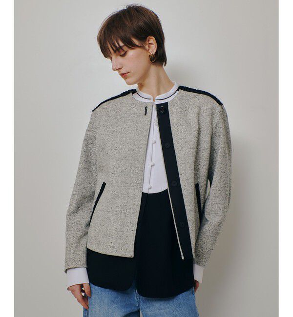 【allureville 2024 autumn&winter】女性らしい柔らかな印象を与えてくれる、温かみのある優しいカラーのブークレー素材を使用したノーカラーショート.. |