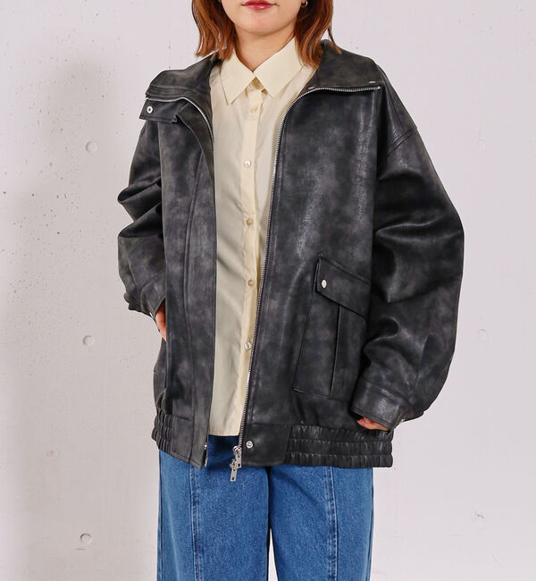 ■春コーデを格上げ。2WAYで楽しめるブルゾン■【デザイン】・ミドル丈でヒップラインまでしっかりカバーできる安心感のあるシルエット・肩が落ちたたっぷりめの.. |