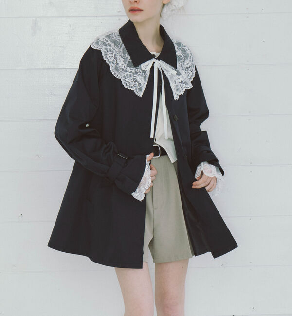【アルシーヴ/archives】 レースカラー付ミドルトレンチコート