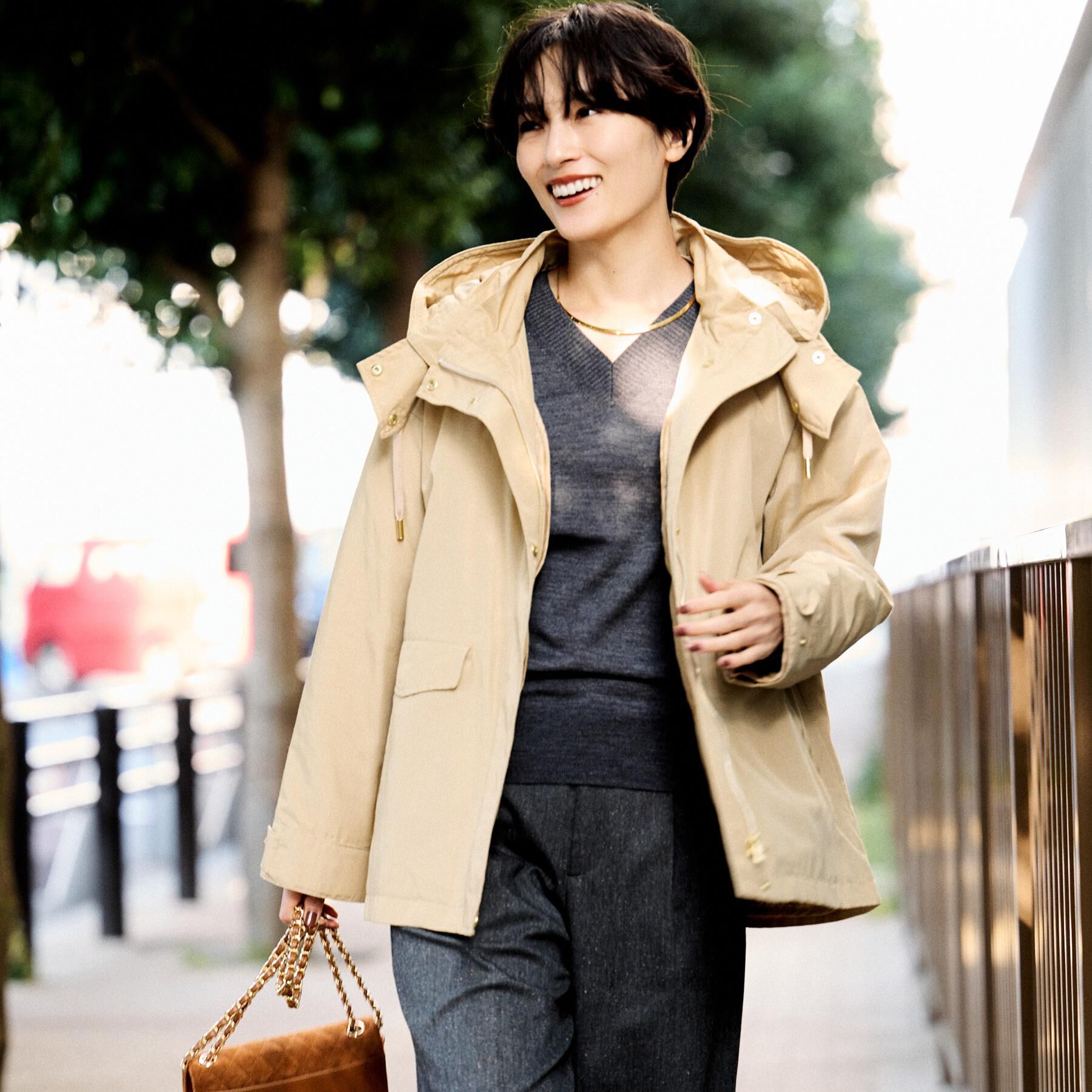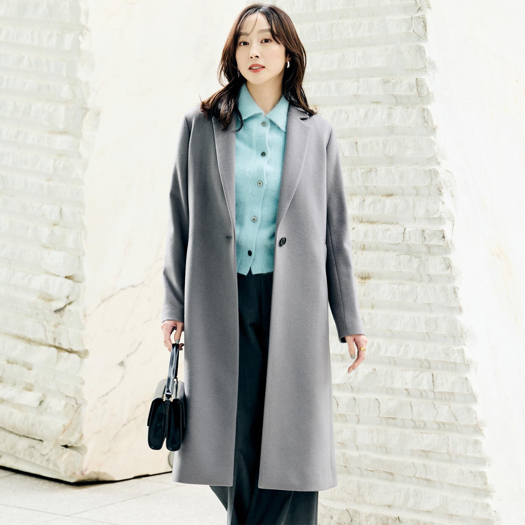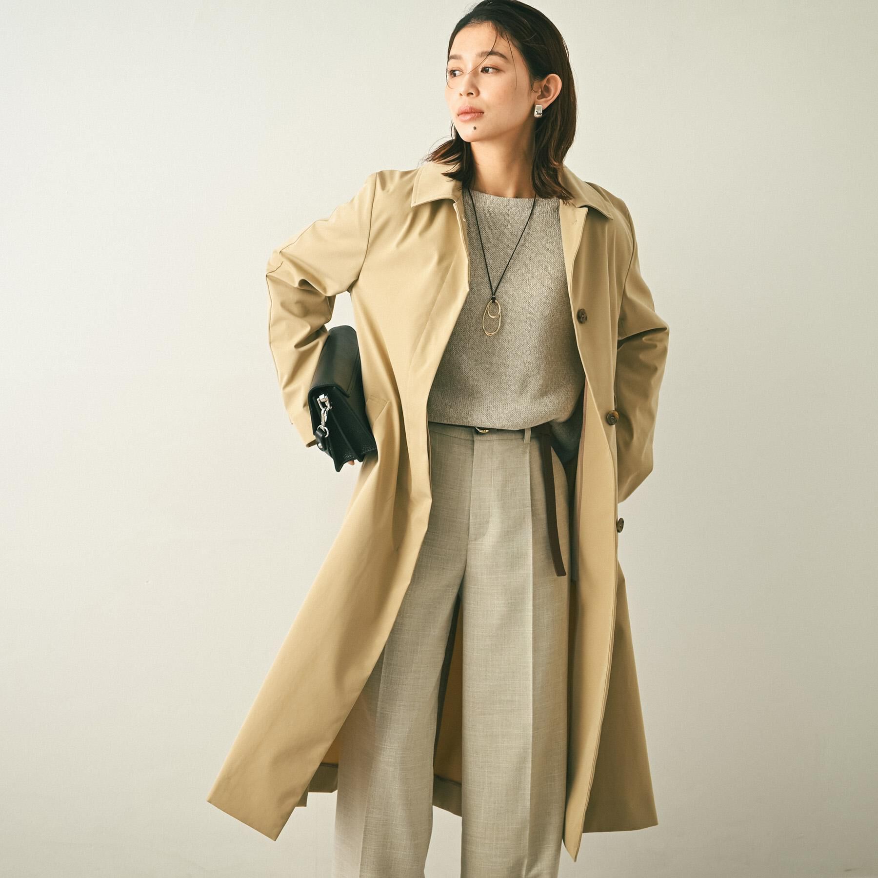 【デザイン】どんなスタイルにも取り入れやすいステンカラーコート。比翼仕立てによるミニマルなフロントデザインが、シンプルでありながら洗練された印象の1.. |
