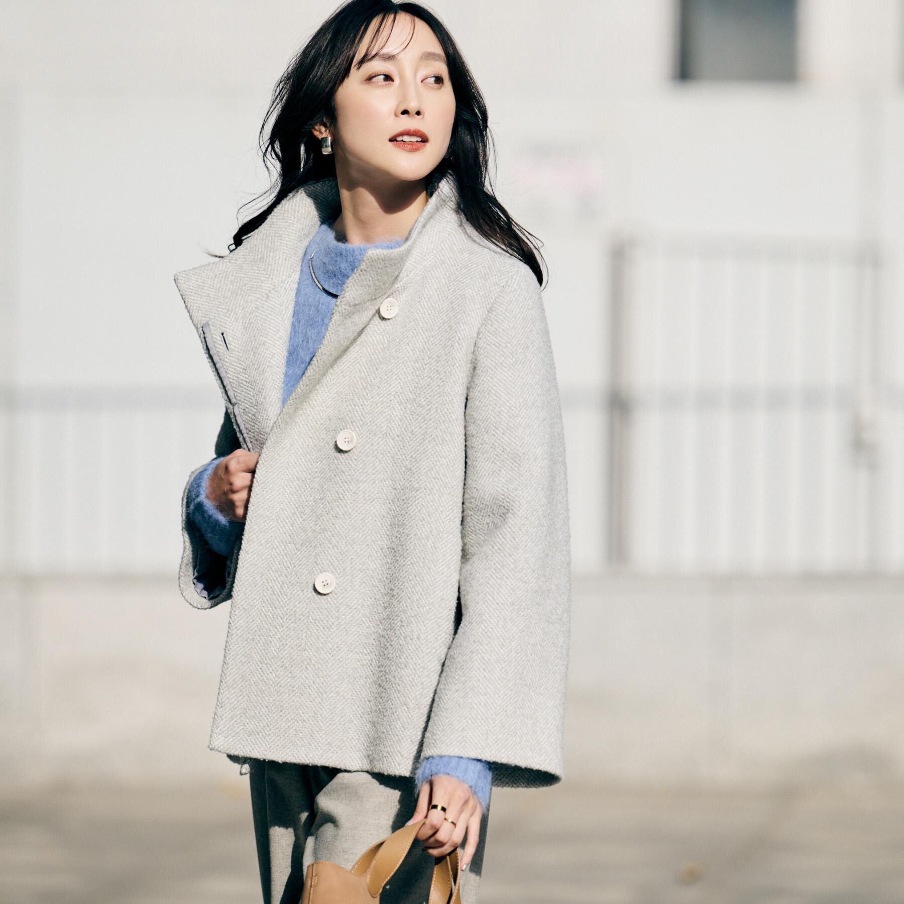 【デザイン】ミックスヘリンボンのスタンドカラーコートのクラシックなデザインが、エレガントさを引き立てながらどんなシーンにもピッタリなアイテム。スタン.. |
