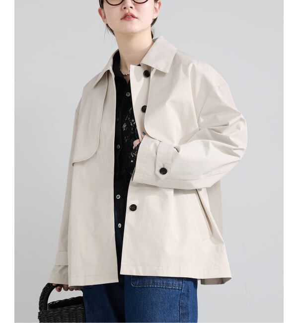 【2026SS】IENAトレンチコートの要素をシンプルに落とし込み、軽やかな着丈に仕上げたシングルショートコート。ポリエステル×コットン素材ならではの程よいハ.. |