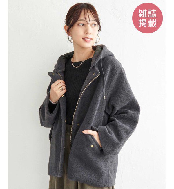 【雑誌InRed(宝島社)1月・2月合併号掲載】もこもことした表情が魅力のブークレー素材を使用したミドル丈の2WAYコート。フードは取り外し可能で、その日の気分.. |