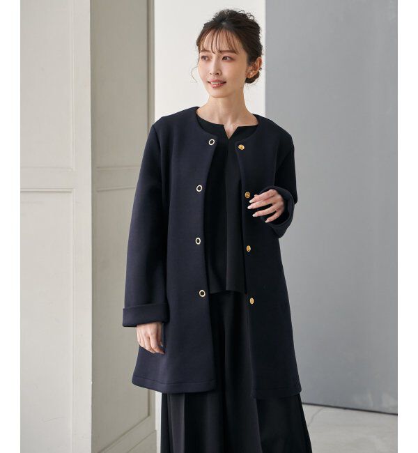 上品な佇まいで日常からセレモニーまで活躍するノーカラーコート。軽やかで立体的な素材に、ゴールドカラーのリングドットボタンを添え、クラシックな雰囲気を.. |