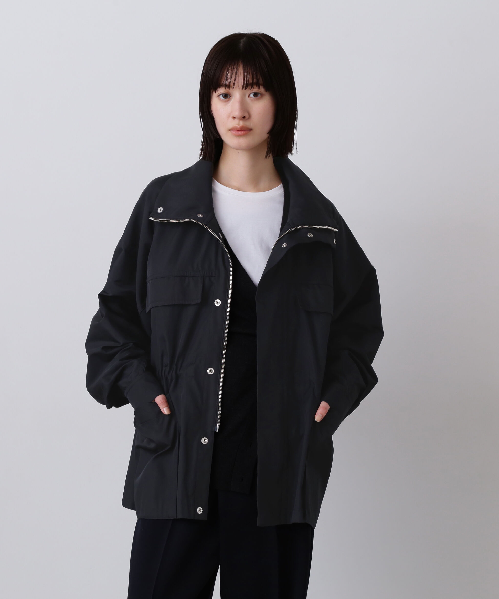 経緯にポリエステルのマイクロファイバーを、ドイツ製織機で高密度に織り上げた二重織物。マウンテンパーカーの構造がベースですが、ウェストのドロストなど着.. |