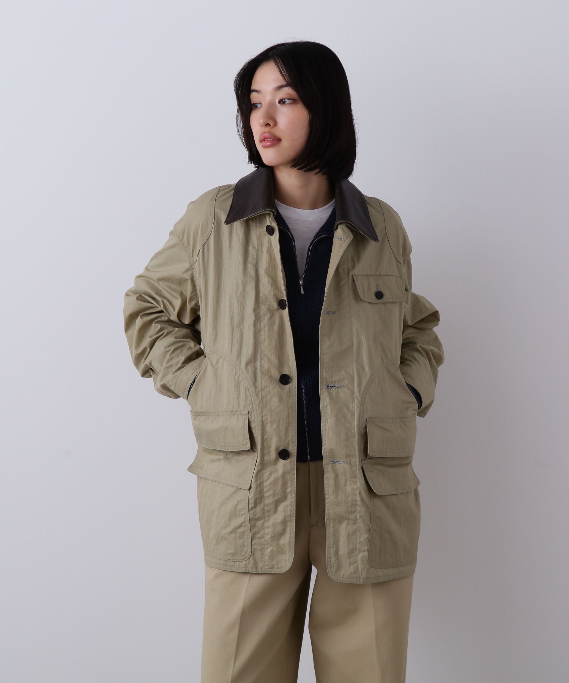 THE LIBRARYでしか手に入らない別注アイテム。二重織のしなやかな風合いの生地を使用した、ボタンレスのコートです。羽織り感覚で着たり、ベルテッドして、襟.. |