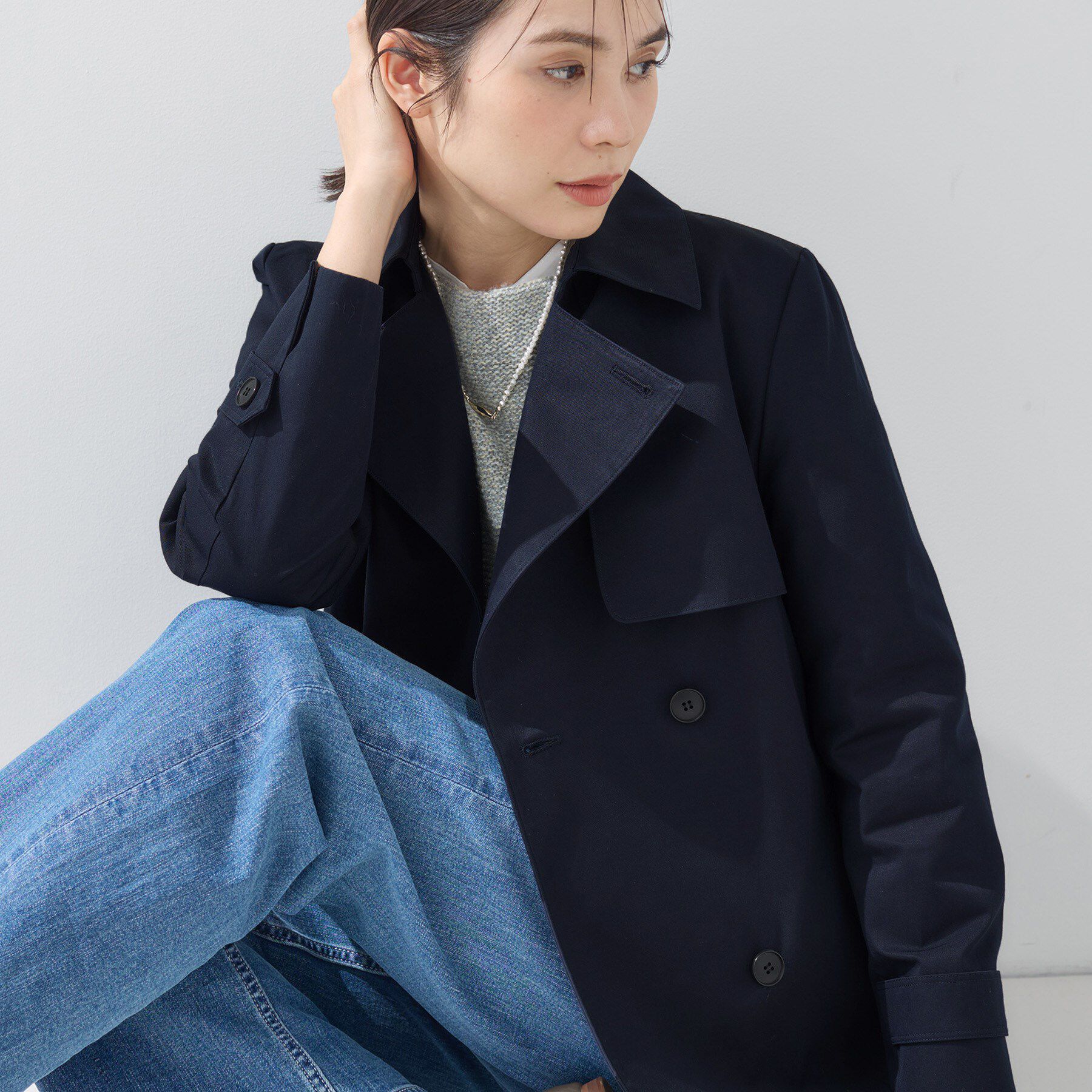 【デザインポイント】極薄手のウール100%素材を使用したショートトレンチコートです。薄く軽やか、細番手ウールの上品な光沢が特徴です。ゆったり目のサイジ.. |