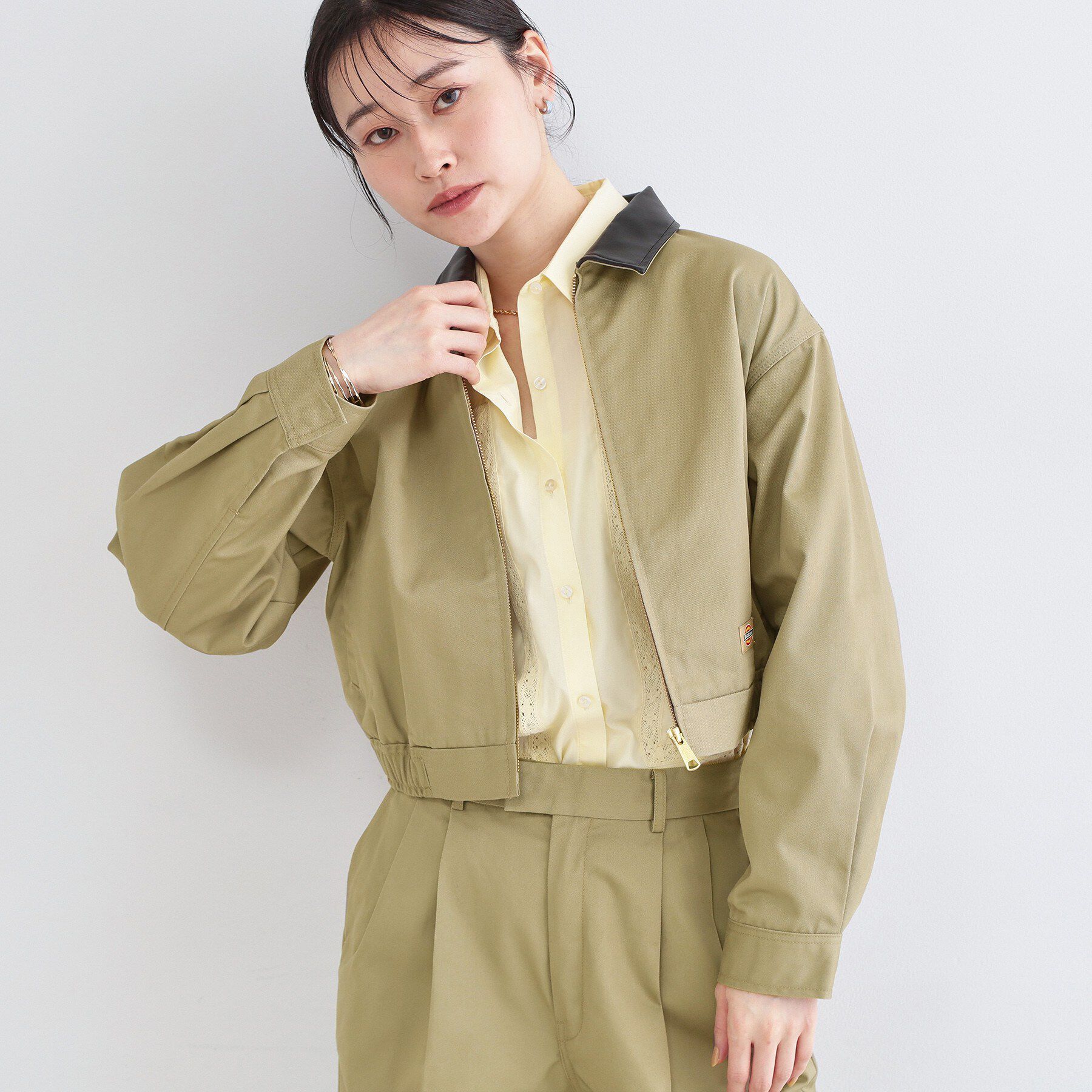【Dickies(R)(ディッキーズ(R))×OPAQUE.CLIP】別注シリーズレザー調使いのステンカラージップアップブルゾン【デザイン】・コンパクトなショート丈のバ.. |