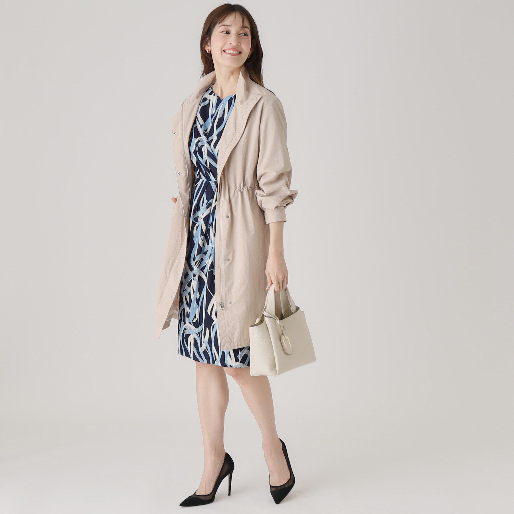【デザインポイント】クードシャンス定番のキレイ目トレンチコートです。グログラン調のタフタ素材を使用、お手入れしやすいくシワになりにくいのが魅力です。.. |