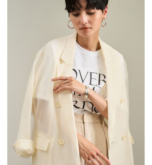 ■デザイン / シルエットエフォートレスなムードが漂う、軽やかなシアーライトジャケット。リラクシーなオーバーサイズシルエットに、ダブルブレストのテーラー.. |
