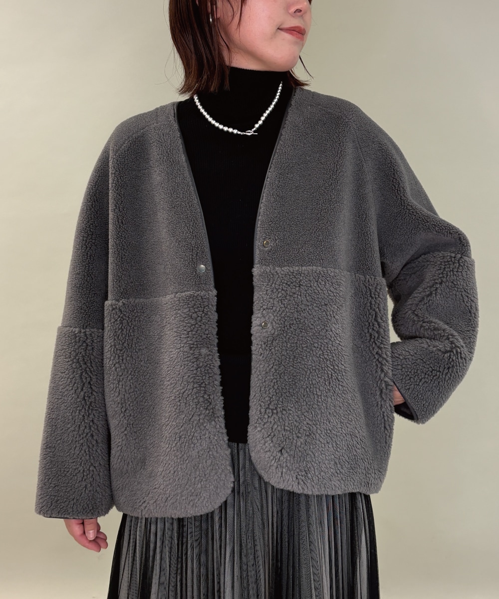 ・al'aise modulation・ 【デザイン】どちらを表にしても着用できる2WAY仕様が嬉しいショート丈コート。もこもことしたボア素材を表にするとカジュアルな印象.. |