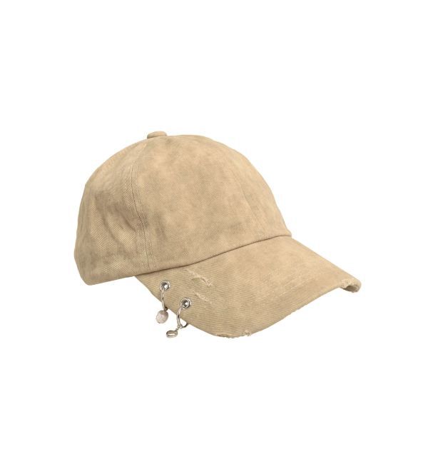 トレンドのピアスデザインを取り付けたキャップ■デザインムラありのツイル生地に、アイレットとピアスのメタル感がアクセントになるキャップです。キャップは.. |