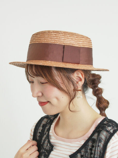 天然素材のナチュラルな風合いを楽しめるリボン付きカンカン帽。あご下で結べるリボンをあしらっているので、ずれにくくフィット感のある着用感を演出します。.. |