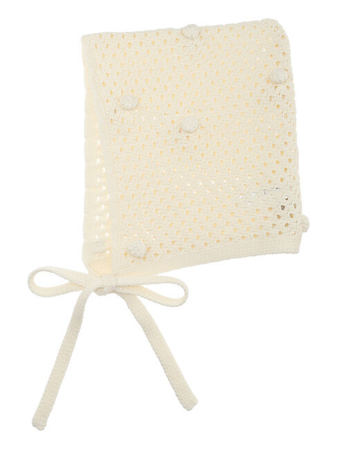 可愛らしいポンポンがアクセントになるボンネット。首元にはリボンが付いているので、フィット感のある被り心地を演出します。暖かみのあるニット素材がポイン.. |