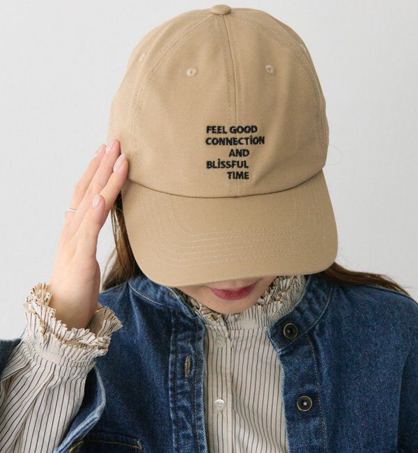 【デザイン】立体感のある刺繍がポイントのキャップ。本体はオールシーズン使えるツイル素材です。ツバが少し長めで、小顔&日よけ効果も!甘めのロゴ刺繍なの.. |