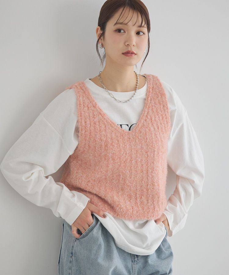 【アースミュージックアンドエコロジー/earth music&ecology】 MIXカラーブークレニットビスチェ