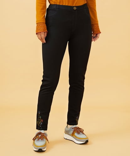 Jocomomola(ホコモモラ) フラワー刺繍入り裏起毛レギンスパンツ ブラック/黒 38