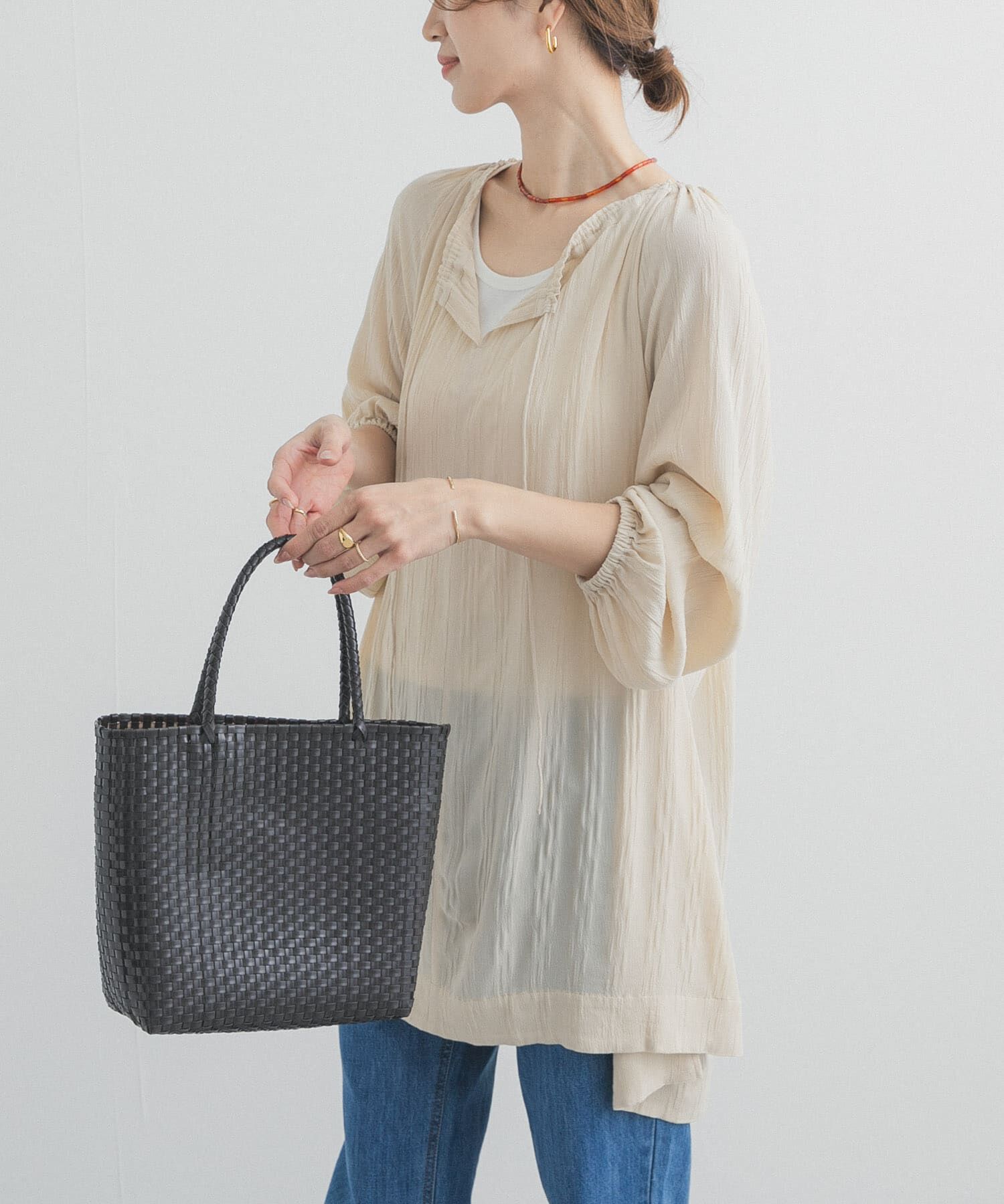 大人カジュアルに映えるきれい目カットソーオープンエンドという空気の流れで撚りを加える方法で作られた糸を使用。軽い着心地なので春先にも重宝する素材感で.. |