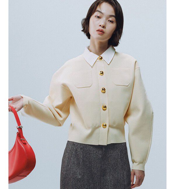 ◆25AW◆ ADAM ET ROPE' FEMME【Material】サステナブルなリサイクルポリエステルを使用。軽くてフォルムが出るポリエステルのニット編地のカーディガン。襟はコ.. |