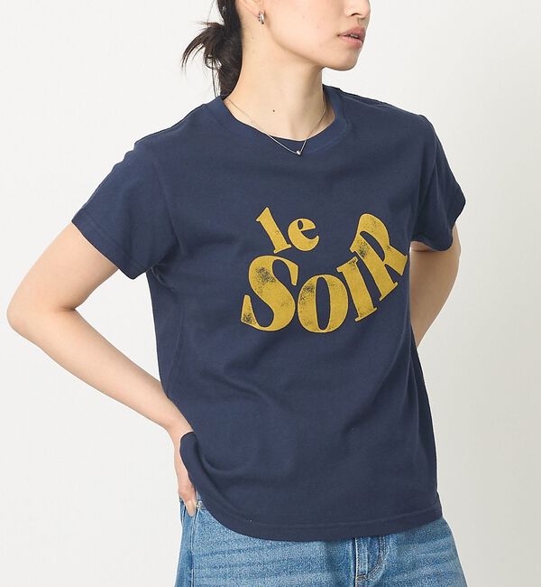 【Design】とても柔らかく着心地が最高なフロッキープリントTの登場。アーチ状に配した「le SOIR:夕方」のロゴをあしらったベーシックTです。コンパクト見え.. |
