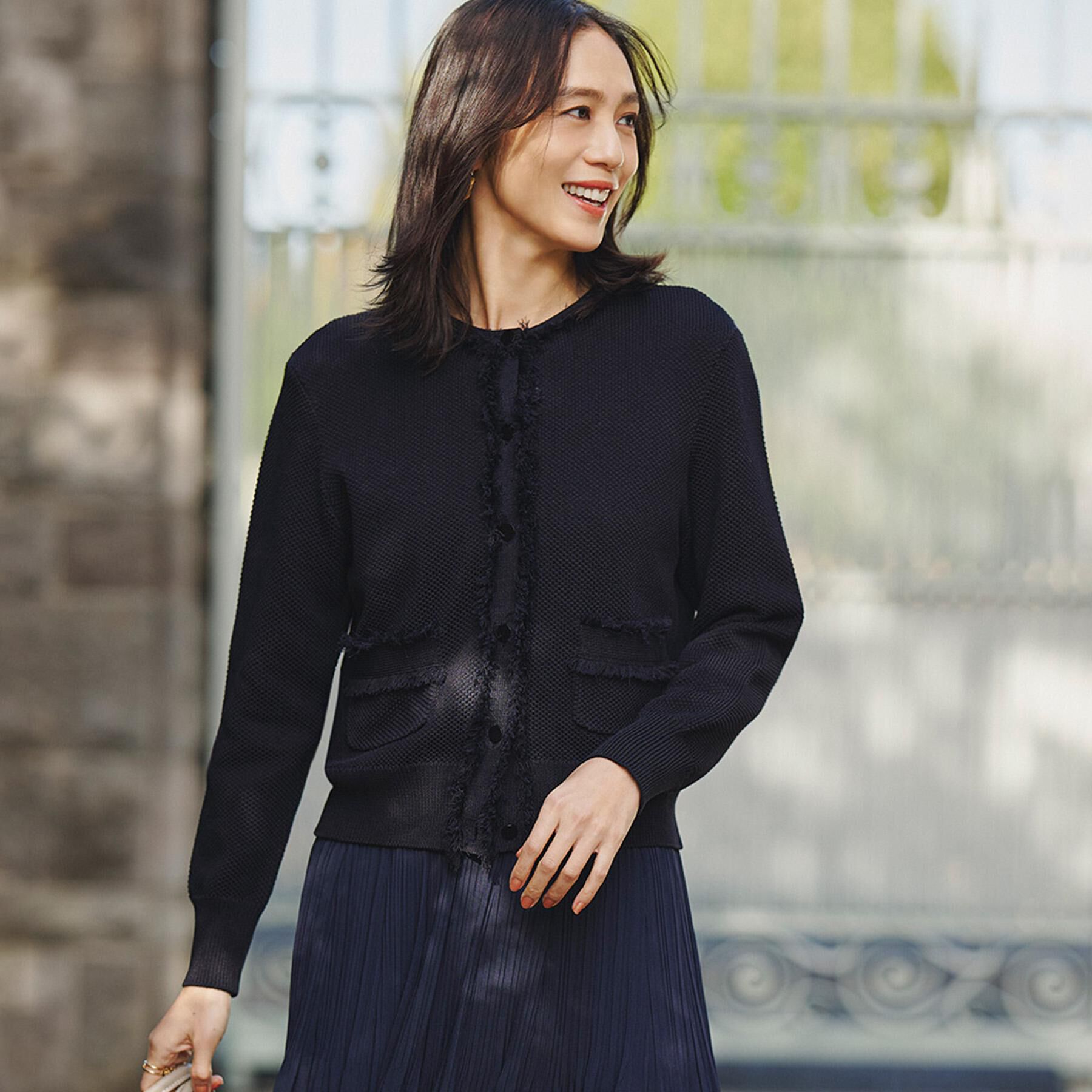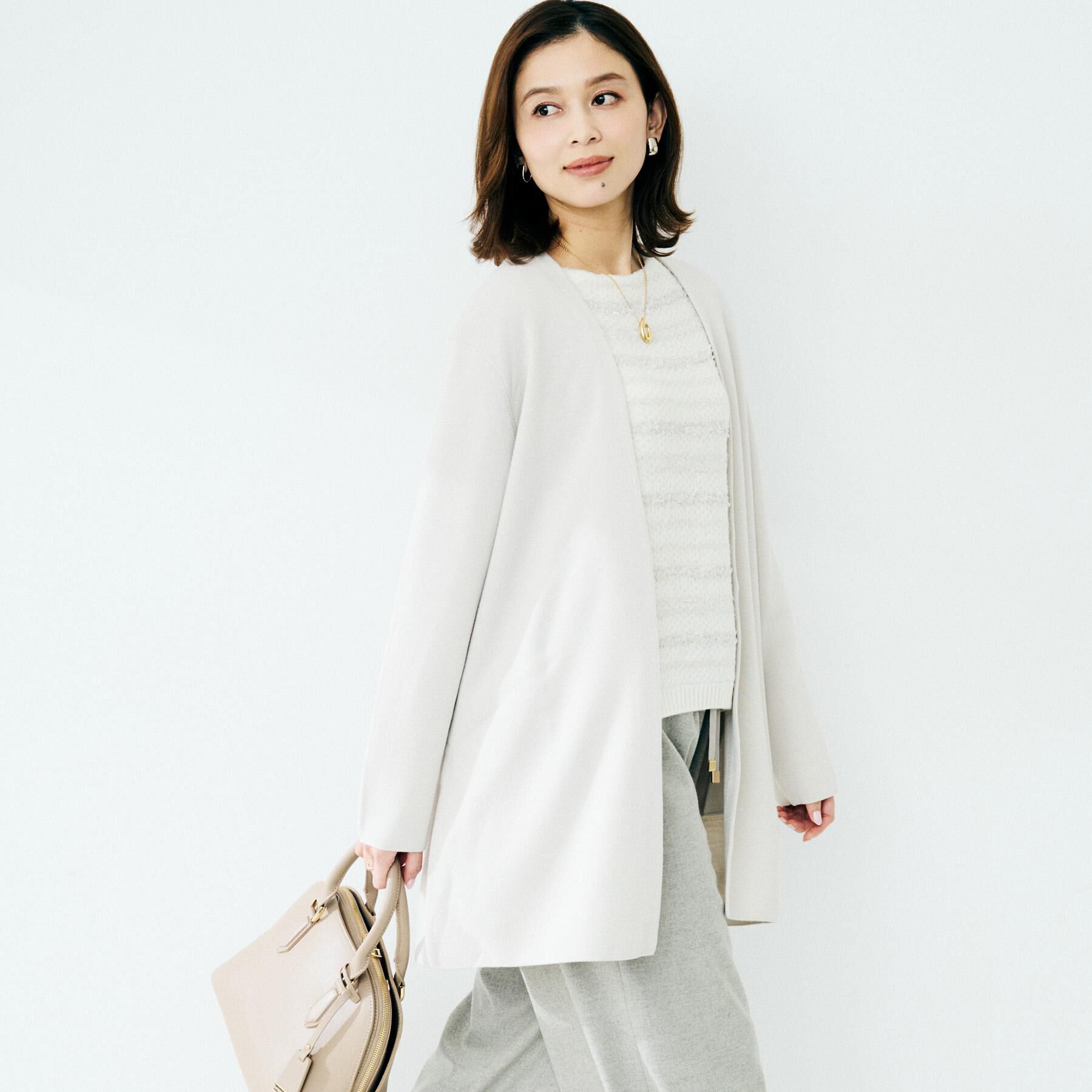 【デザイン】「きちんと感」と「ニットならではの柔らかさ」、適度な厚みとハリ感が特徴のミラノリブカーディガン。ジャケットライクなコンパクトなシルエット.. |