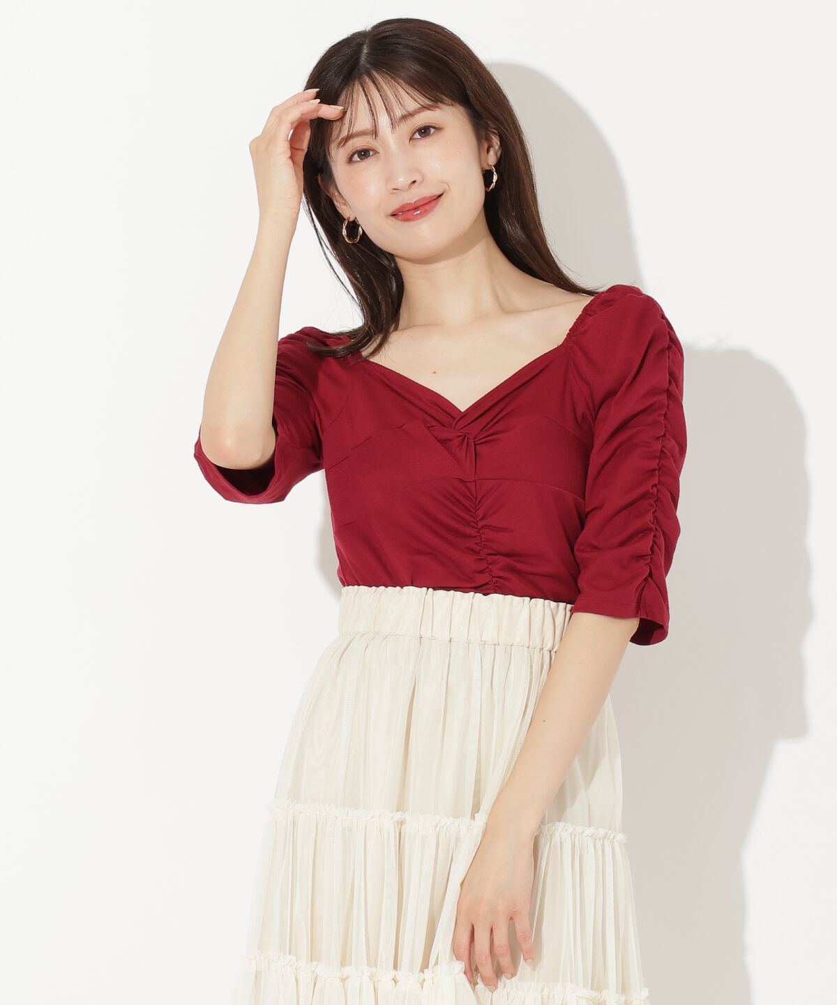 【アンドクチュール/AND COUTURE】 フロントクロスギャザーTシャツ