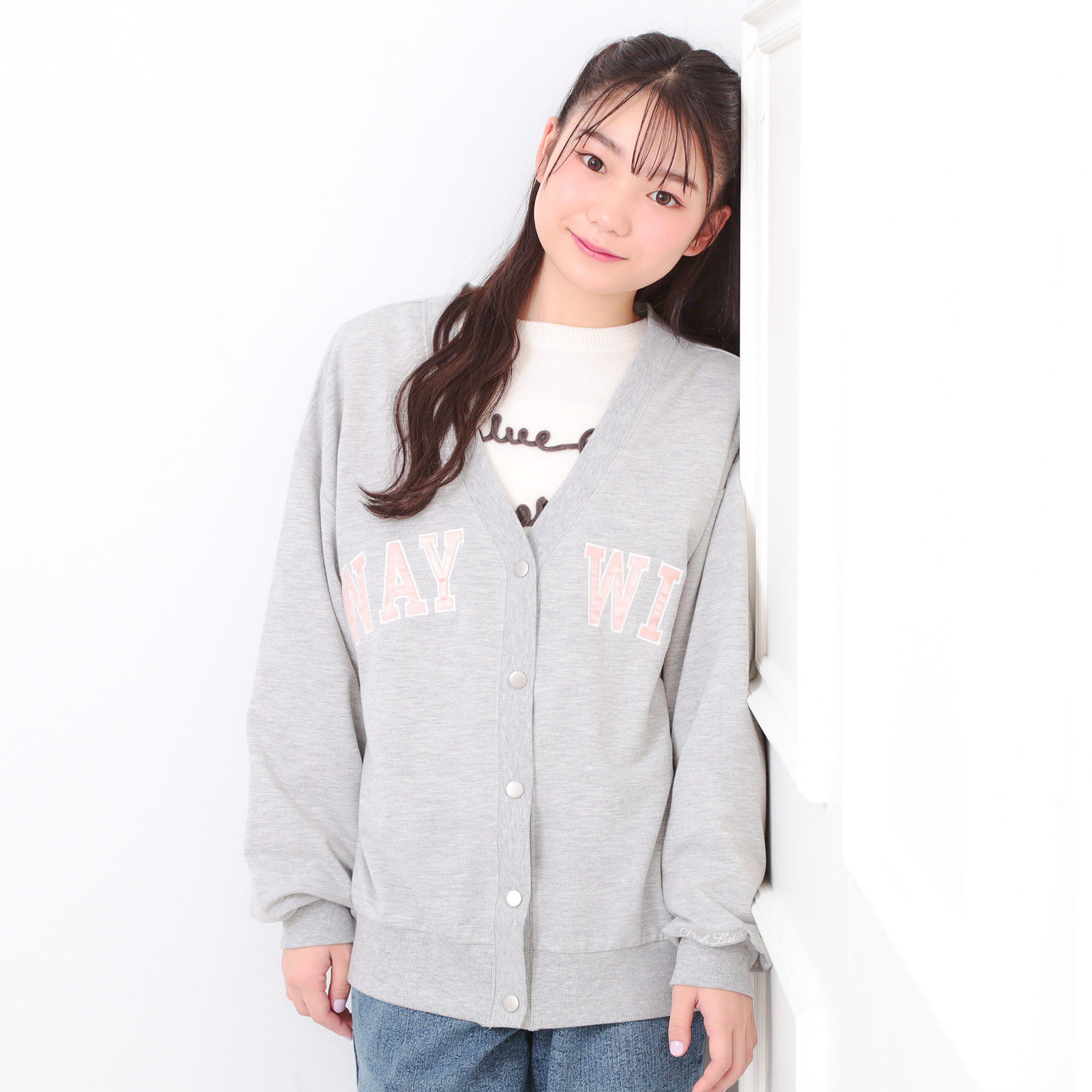 【ピンクラテ/PINK-Latte】 Vネックカレッジアップリケ裏毛カーディガン